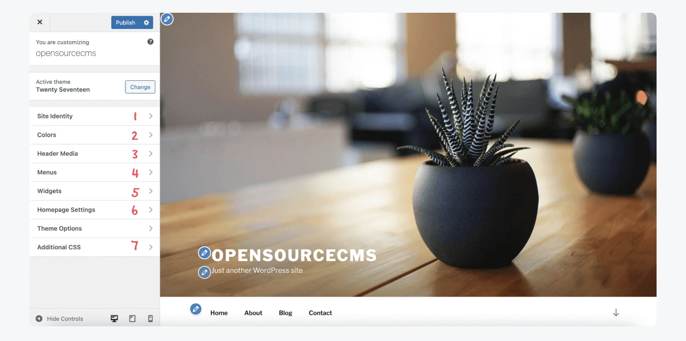 Untuk mulai menyesuaikan dan membuat perubahan pada tema Anda, klik ikon pensil di samping elemen yang ingin Anda edit.